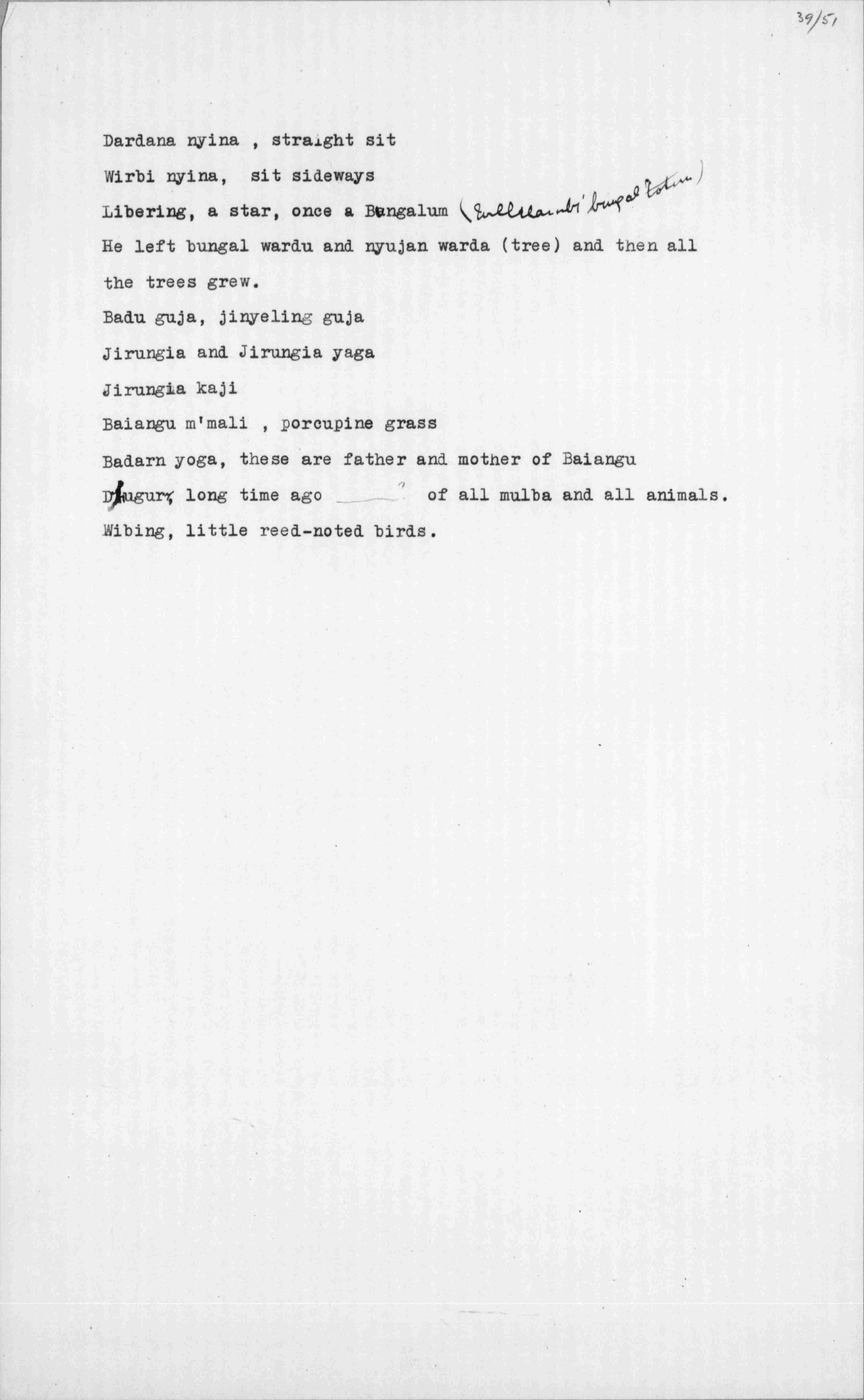 | Dhugury, long time ago -? of all mulba and all animals. | |