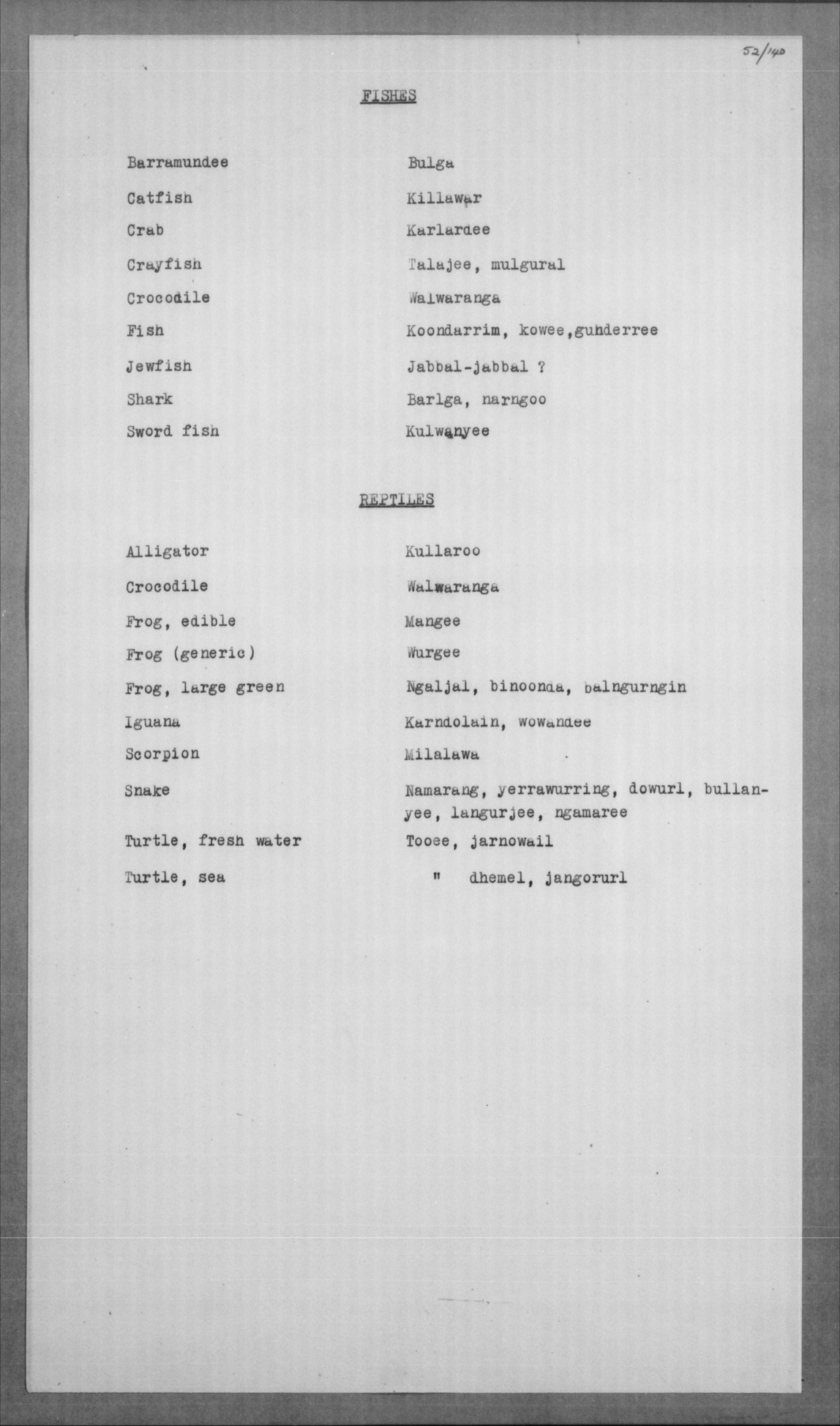 Ngoolngal, ngoolngal galoo, ngarree, gooral |