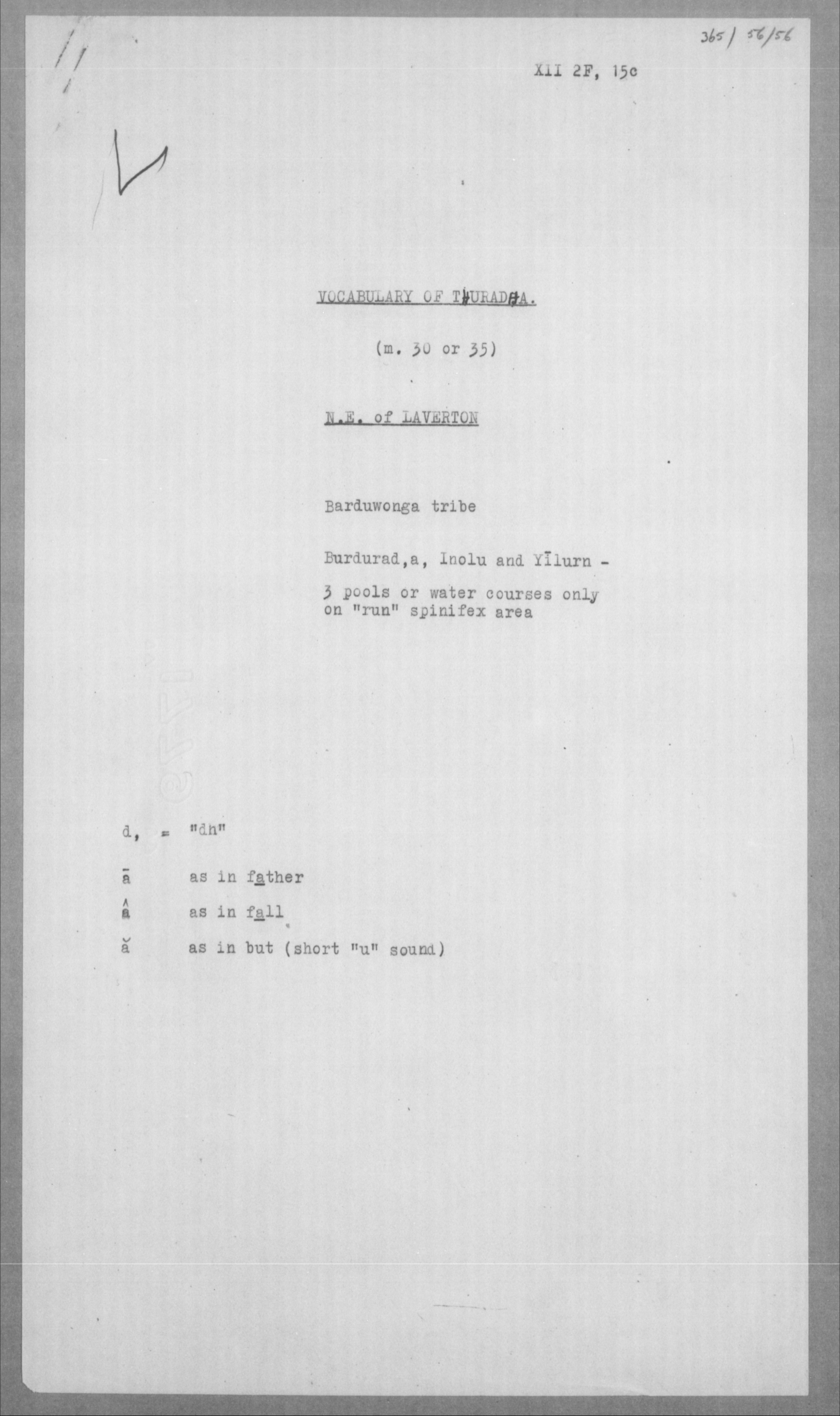 N.E. of Laverton Barduwonga tribe Burdurad,a, Inolu and Yīlurn - 3 pools or water courses only on "run" spinifex area
