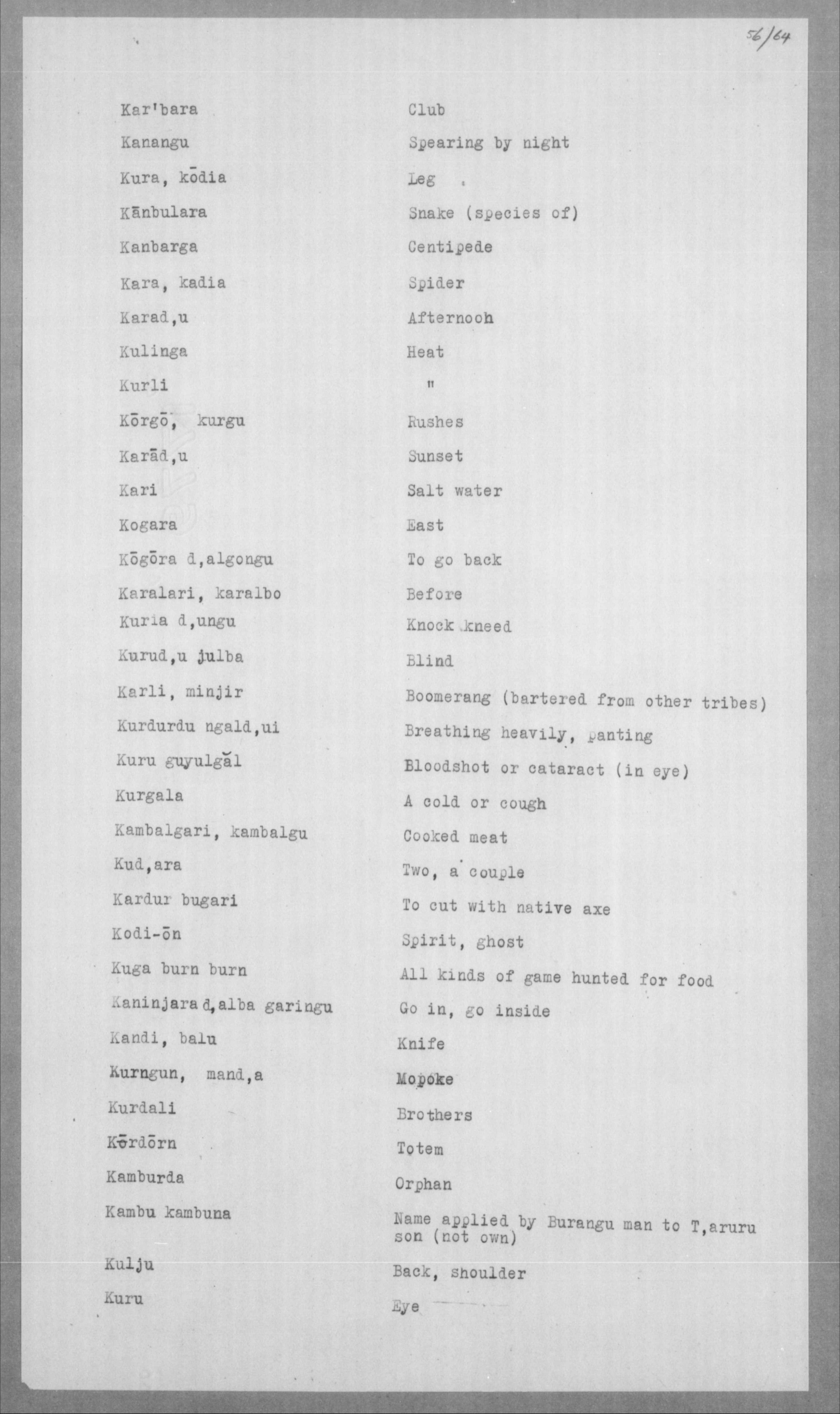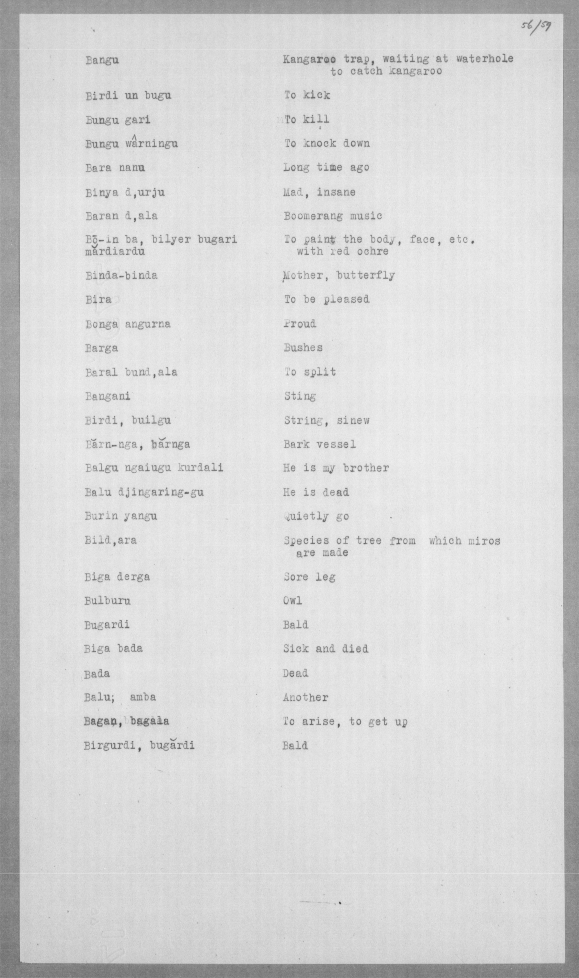 | Bangu | Kangaroo trap, waiting at waterhole to catch kangaroo |