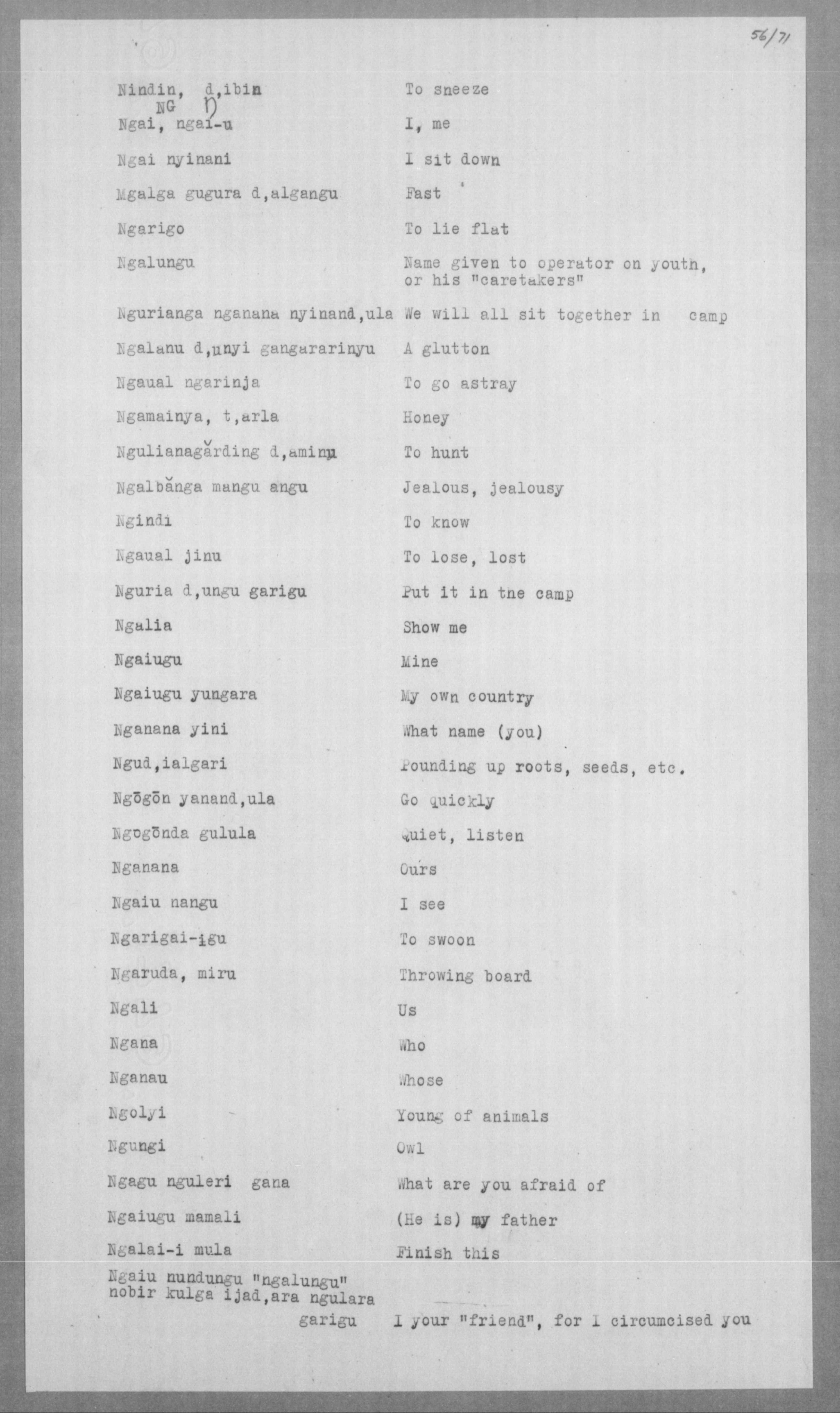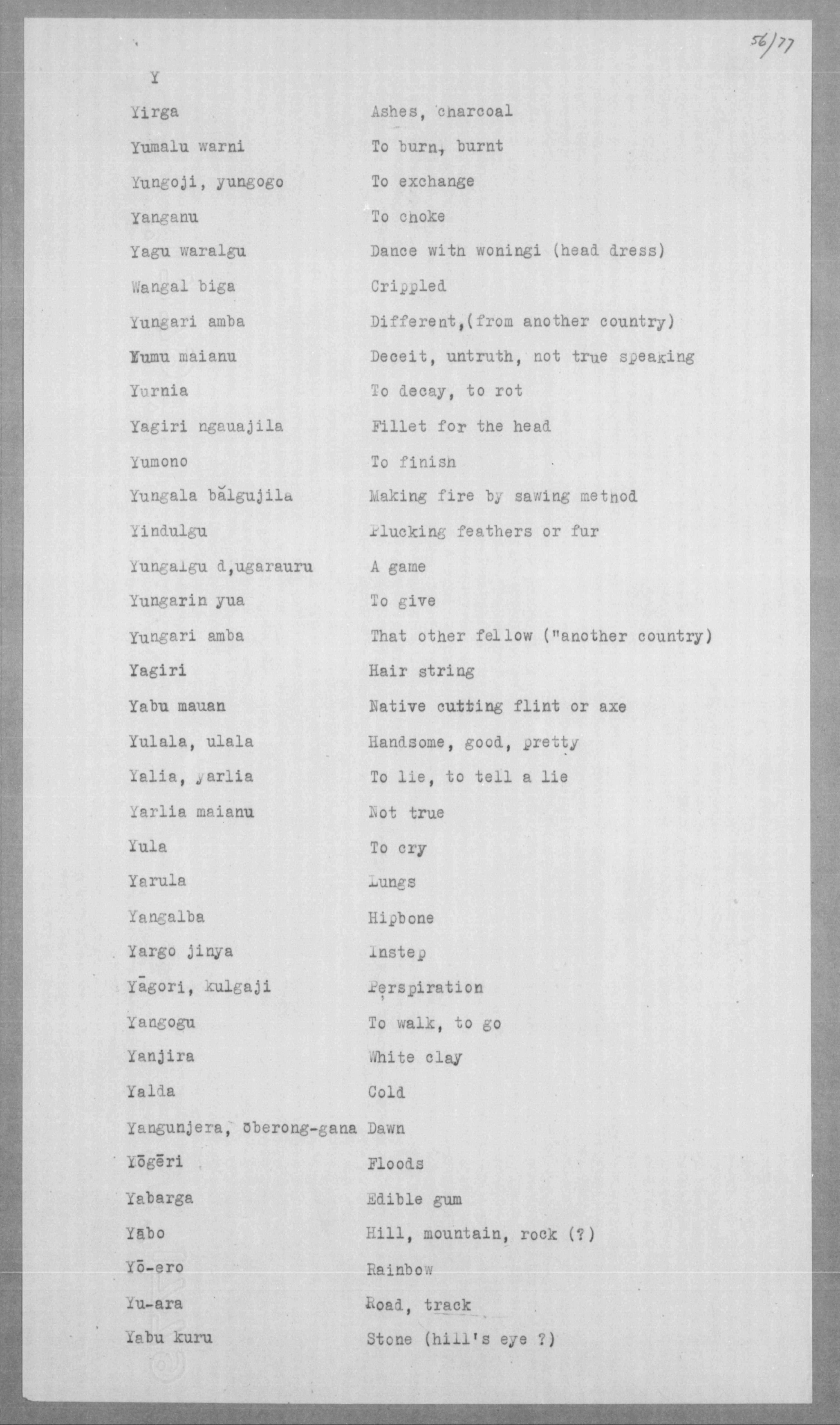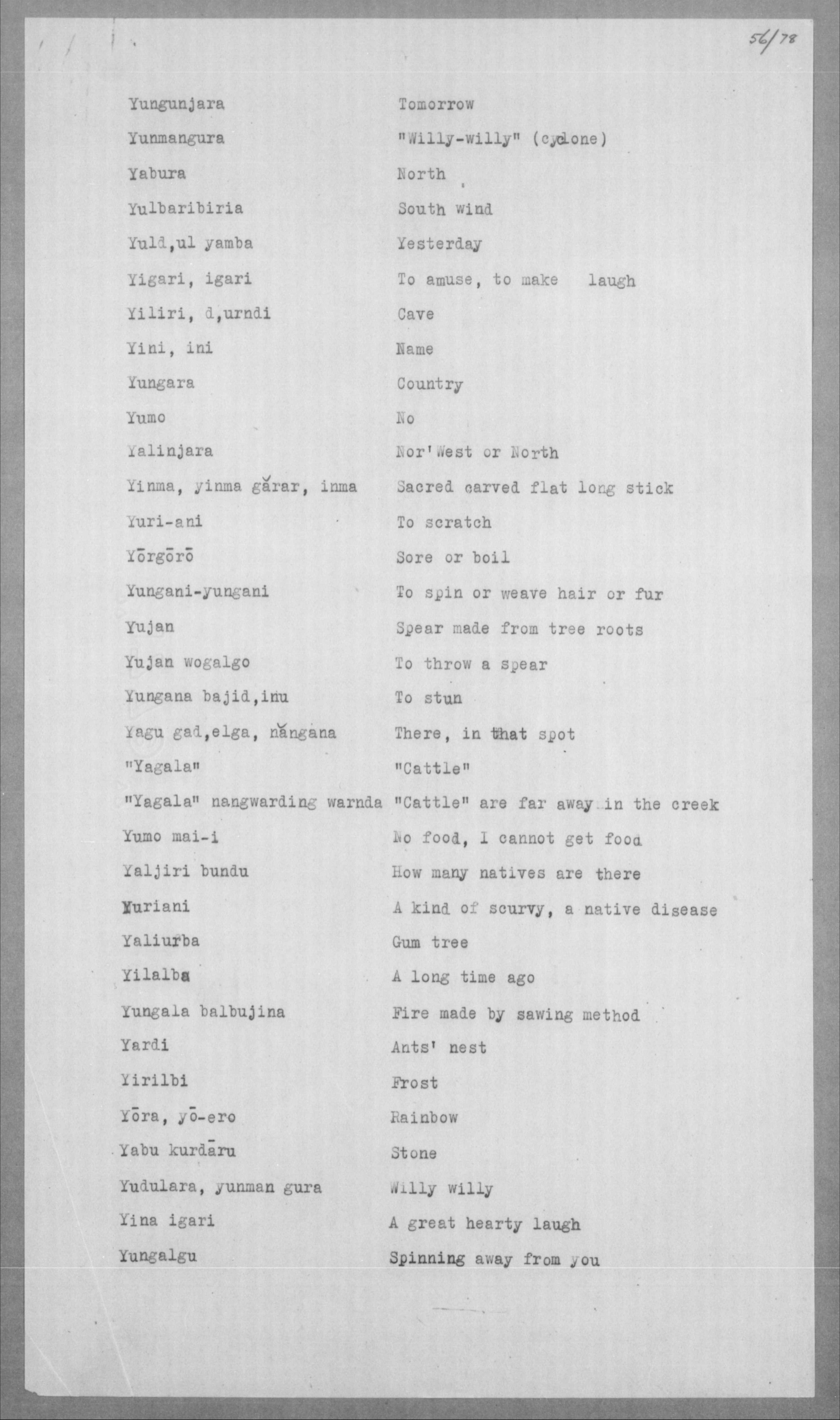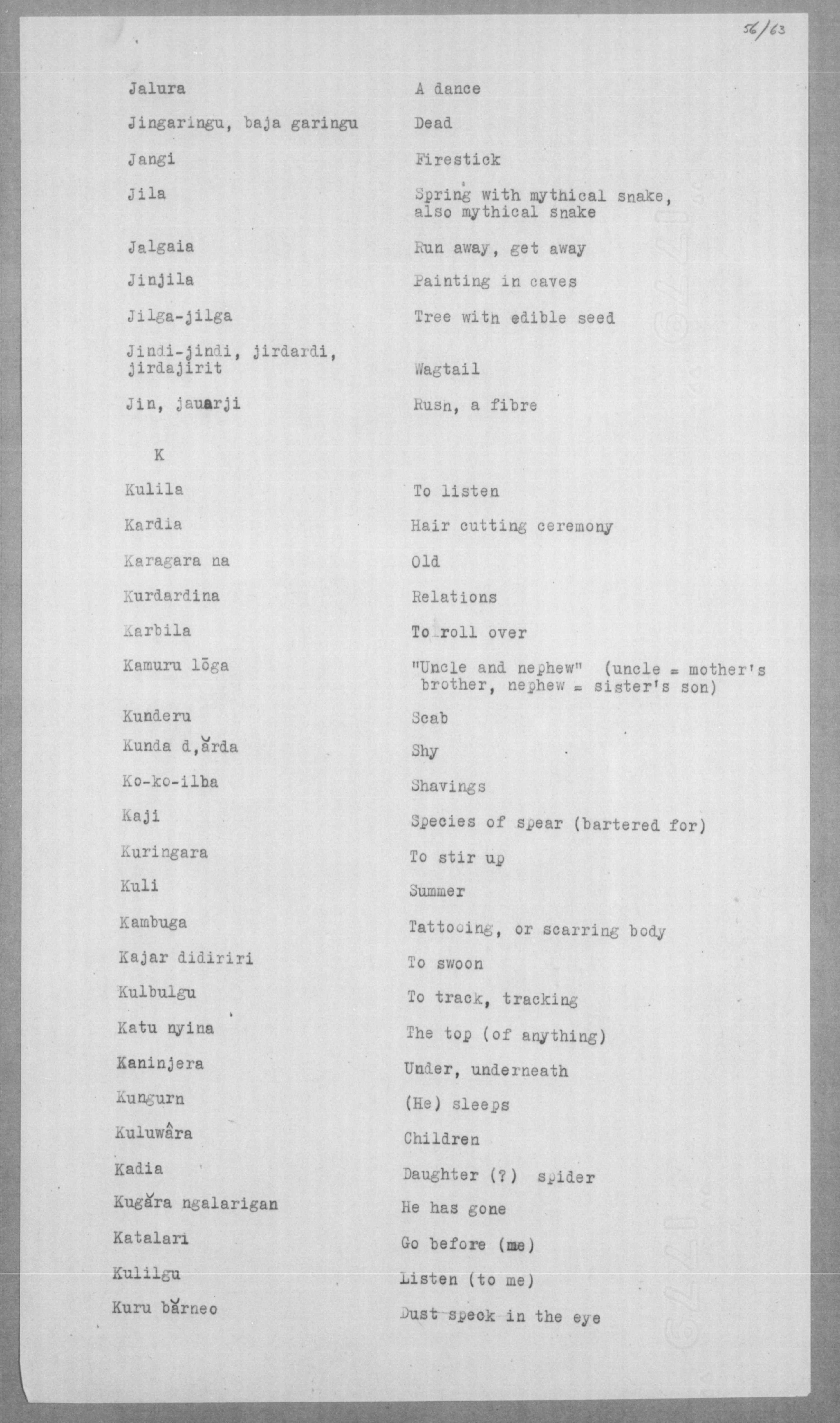 | "Yagala" nangwarding warnda | "Cattle" are far away in the creek |