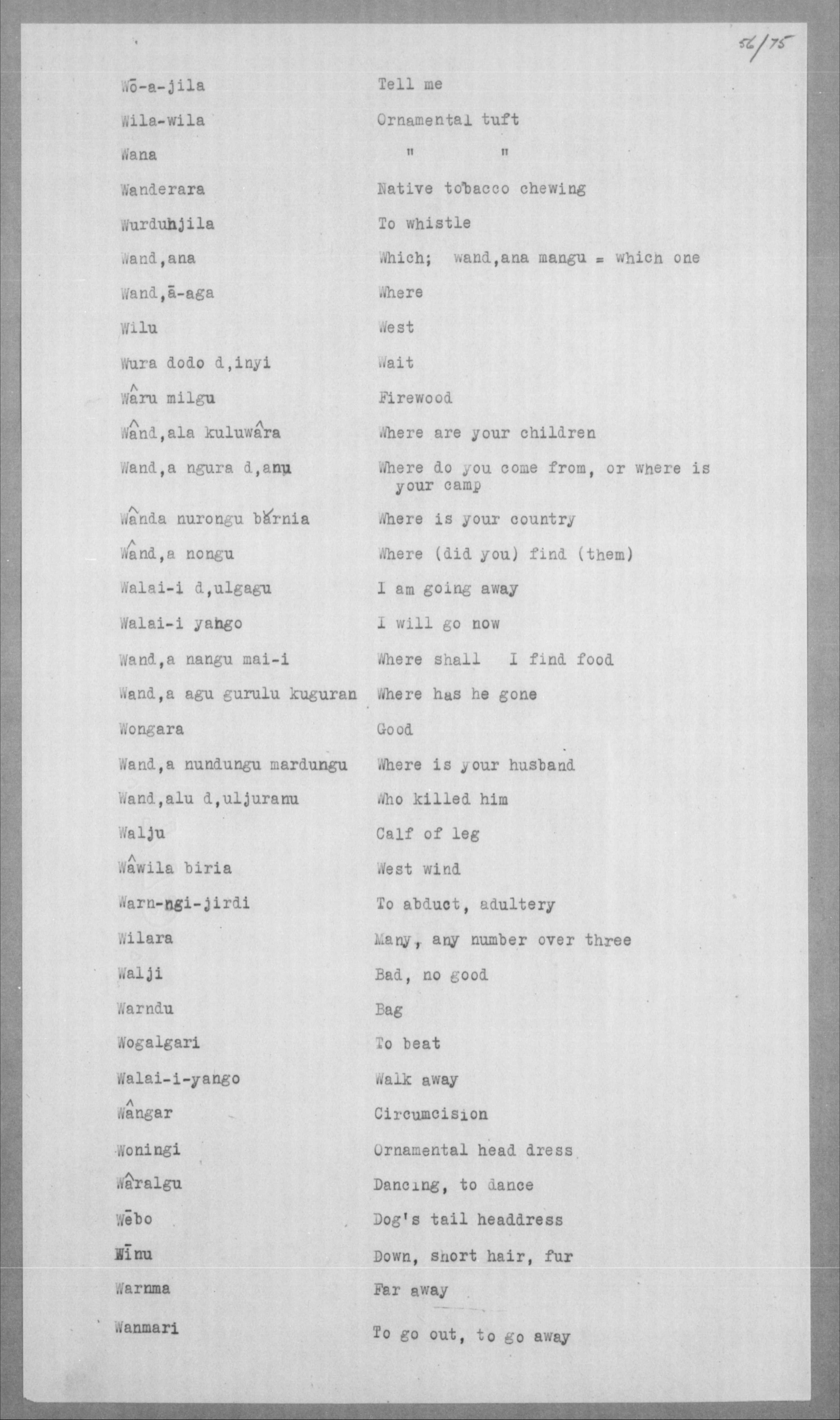 | Wâlari | Laugh, laughter, "nothing", playing |